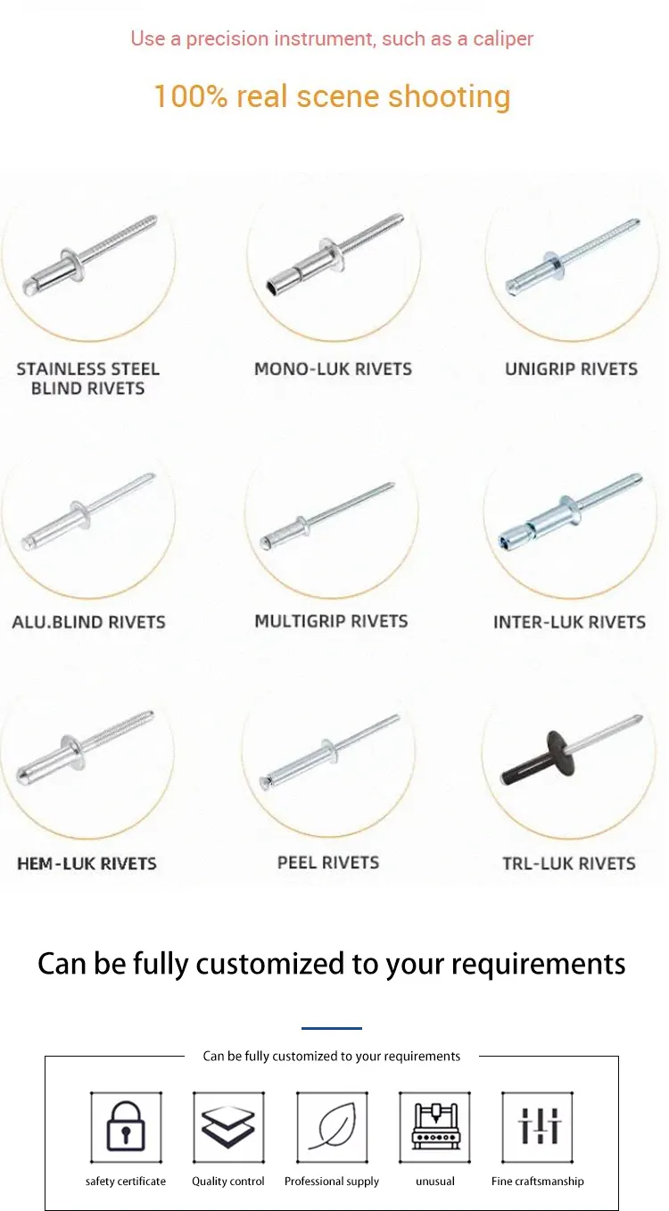 - Stainless Steel Solid Rivets: 5,000 pieces (custom lengths available).