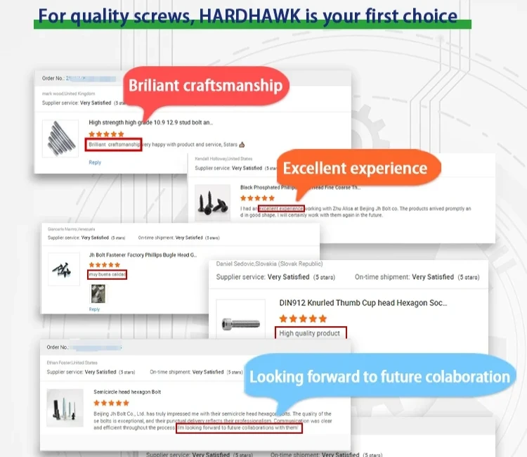 JH Bolt Co., Ltd is a professional manufacturer of different types of bolts with more than 15 years rich manufacturer experience. The factory area is more than 1500 squares with more than hundreds different types ofnevproduction machines. There are more than 50 people who work here for at least 5 years.With quality &customer frst, staffs second, then company, Our products are widely recog-nized and trusted by users all over the world. Proft for the development of communication, We are here for you 12 hours a day, 7 days a week!